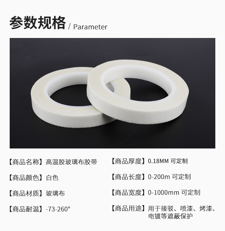 該膠帶以進口高密度玻璃纖維布為基材,適用于變壓器,高溫設備,空調接觸器,線圈包扎及馬達等其他高溫特殊環境應用,具有強拉力,抗摩擦,耐高溫,耐溶劑性,絕緣,耐燃性佳等特性。符合ROHS環保無鹵等優點。