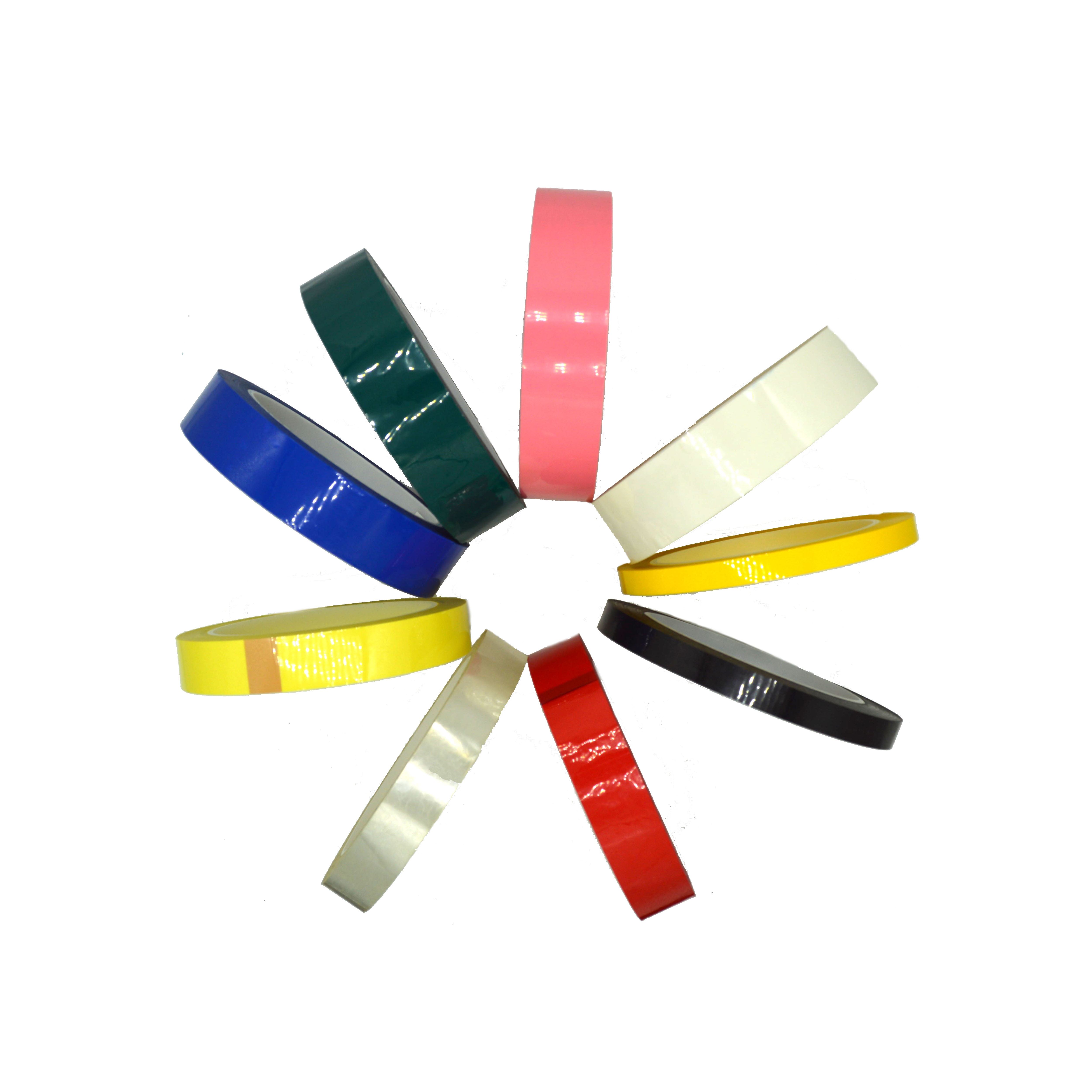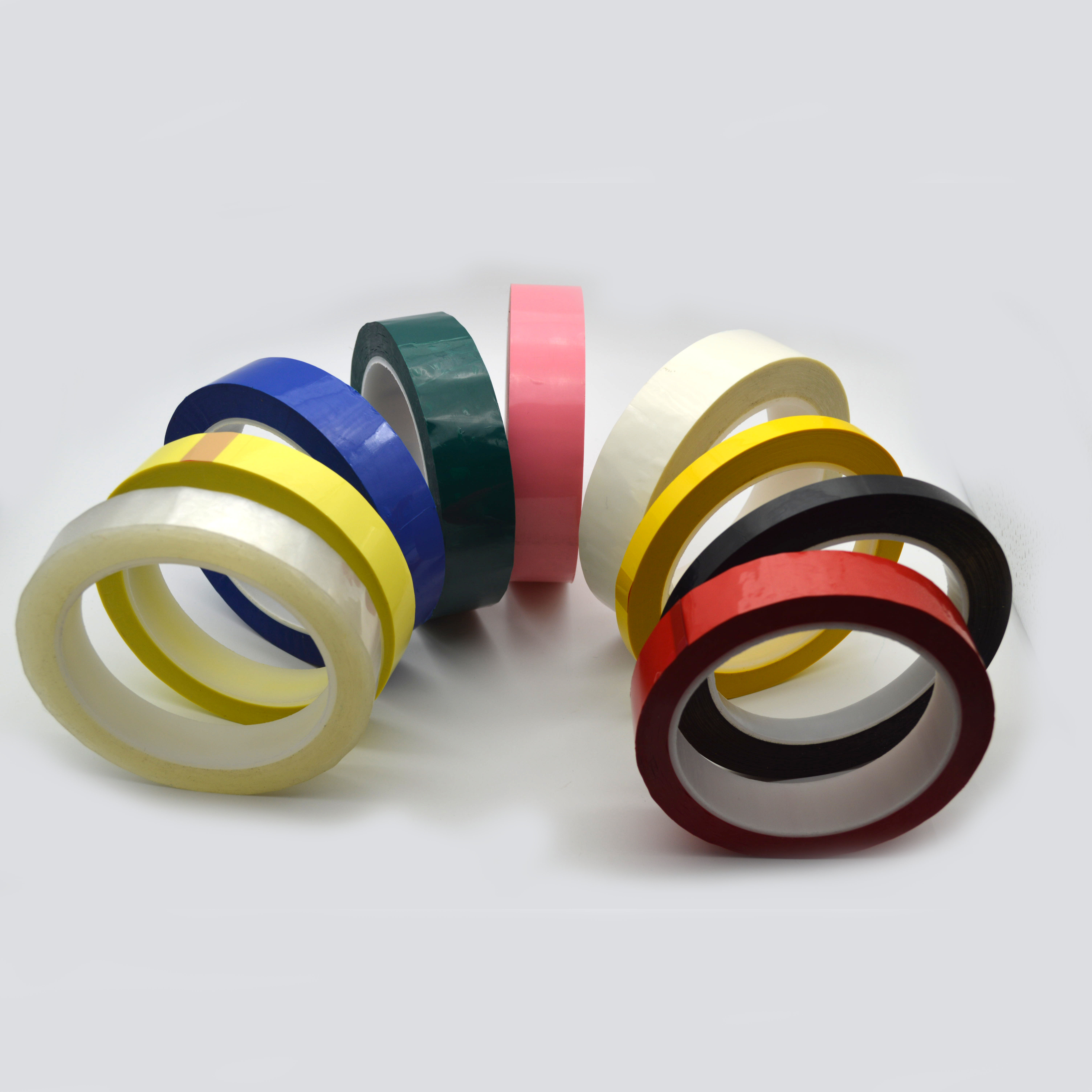 產(chǎn)品為聚酯薄膜基材(polyester)PET涂布耐高溫膠水而成,具有耐高溫,抗化學(xué)溶劑佳,高粘著力,柔軟服帖和再撕離不留殘膠等特性,主要用于變壓器,馬達(dá)等線束包裹。有黃色,綠色,紅色,透明色,黑色,白色可供選擇。
