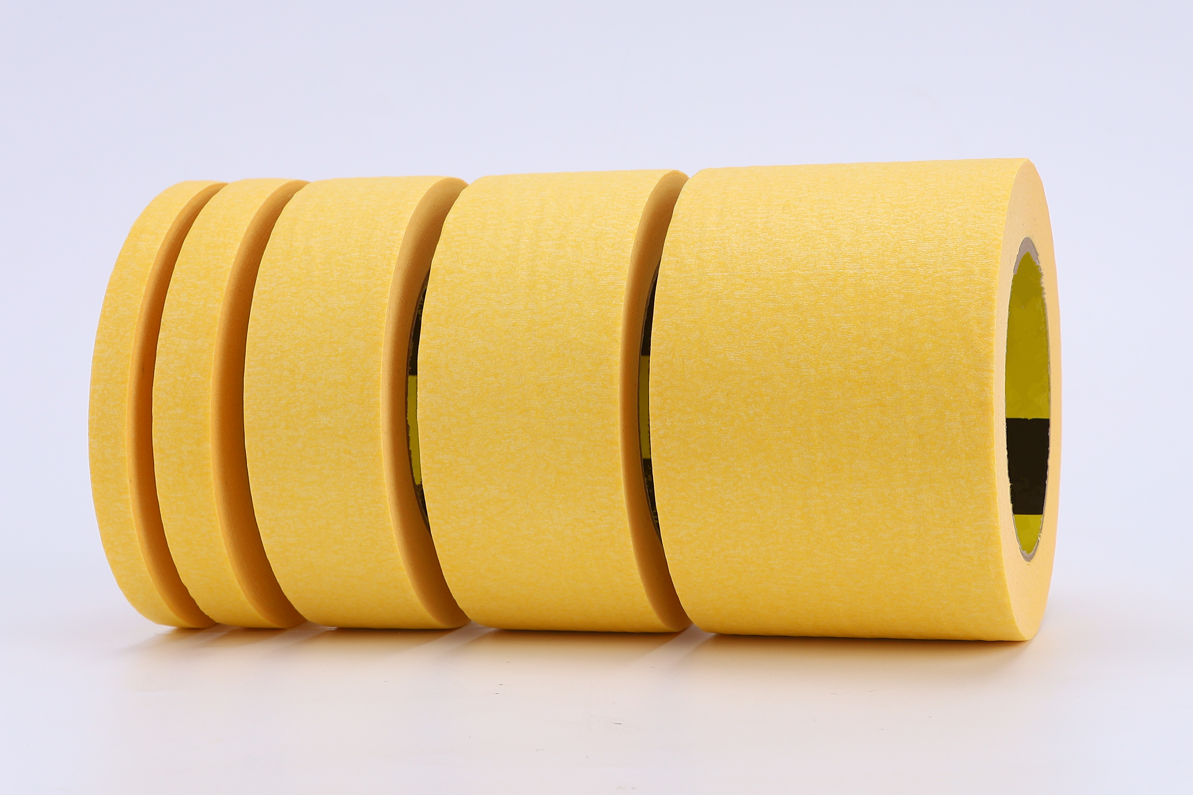 The adhesive tape is made of masking paper or blend paper and coated with glue, this tape can withstand high temperature and solvent, leaves no residues after peeling off. It meets RoHS criteria. This tape is suitable for high temperature painting masking protection for car, steel and plastic products, as well as electronics, electric equipment.