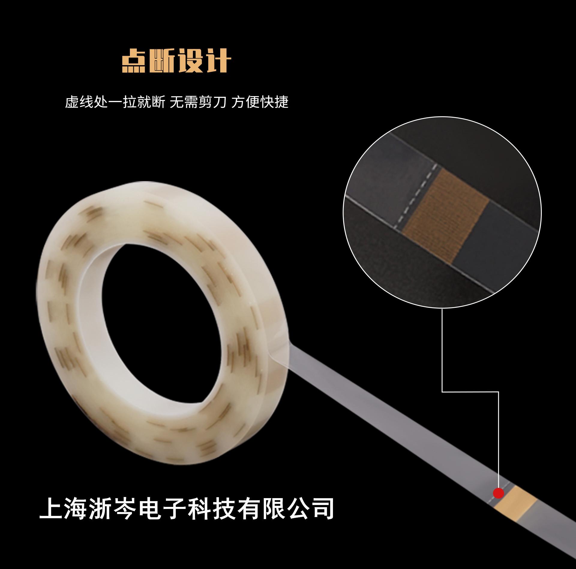 特殊留邊(膠帶頭無膠 15MM)易于撕起,特殊膠臺設計不傷手。 適用各種材質(塑料袋、PVC 袋、包裝紙 ...等)包裝,封口、固定 及顏色標示管理等黏貼用。